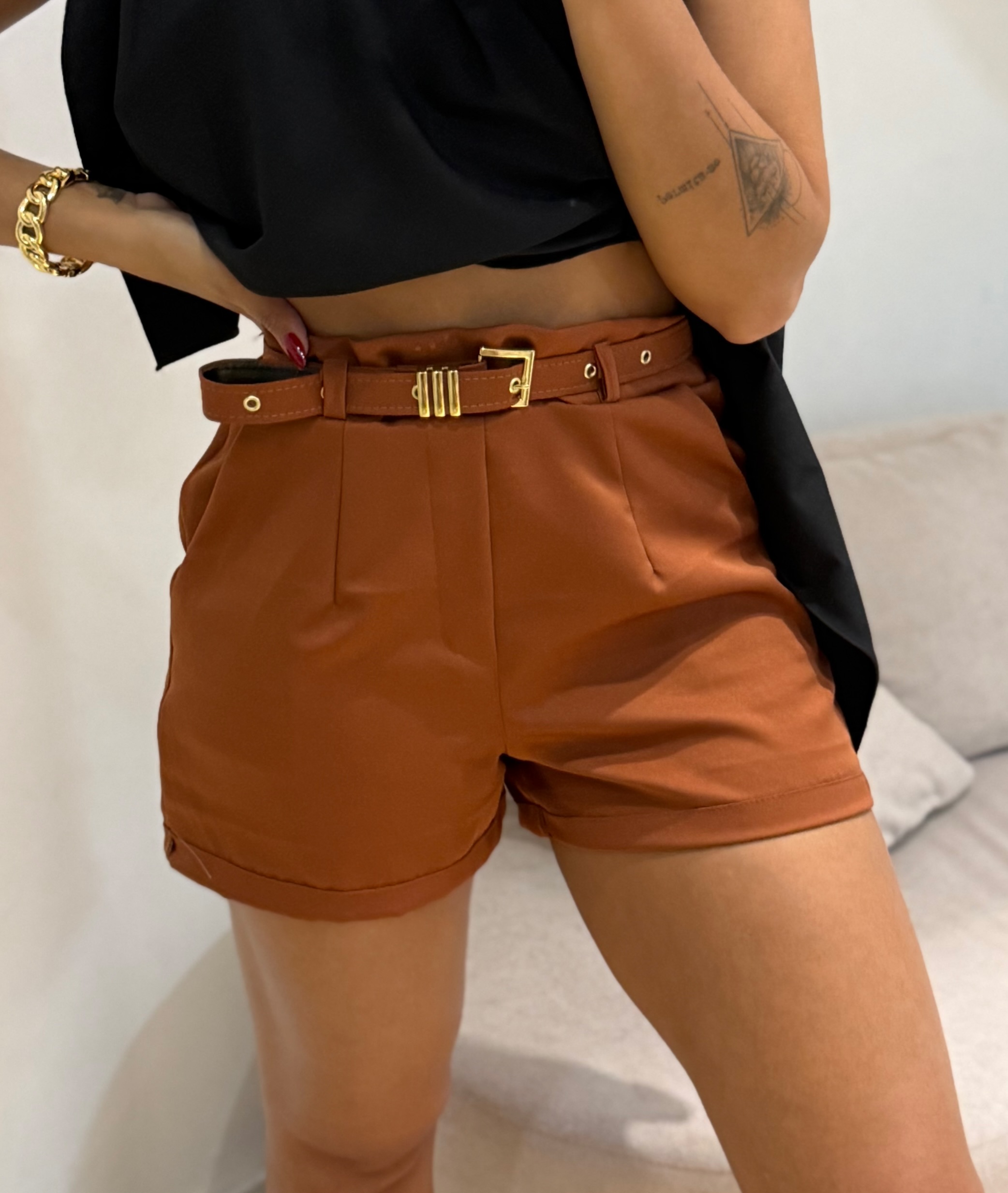 Short Cinto Marrom
